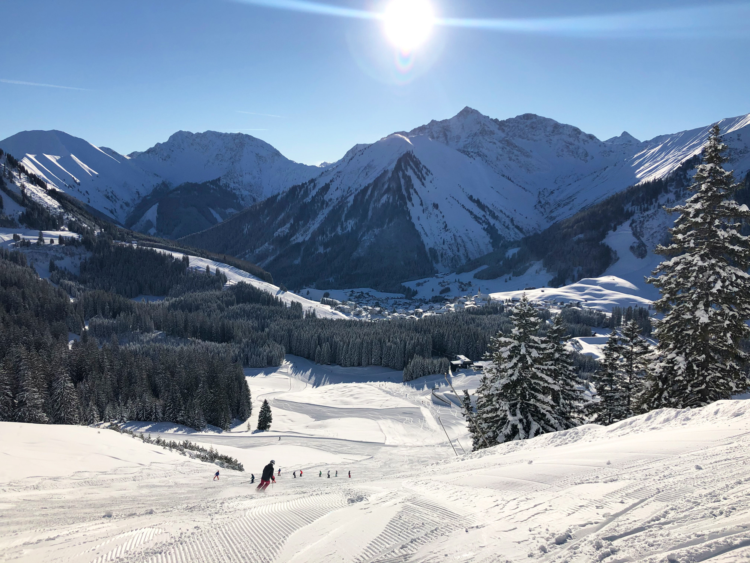 Von der Bergstation des Thanellerkarlifts hat man einen wunderbaren Blick auf Berwang. © Skigebiete-Test