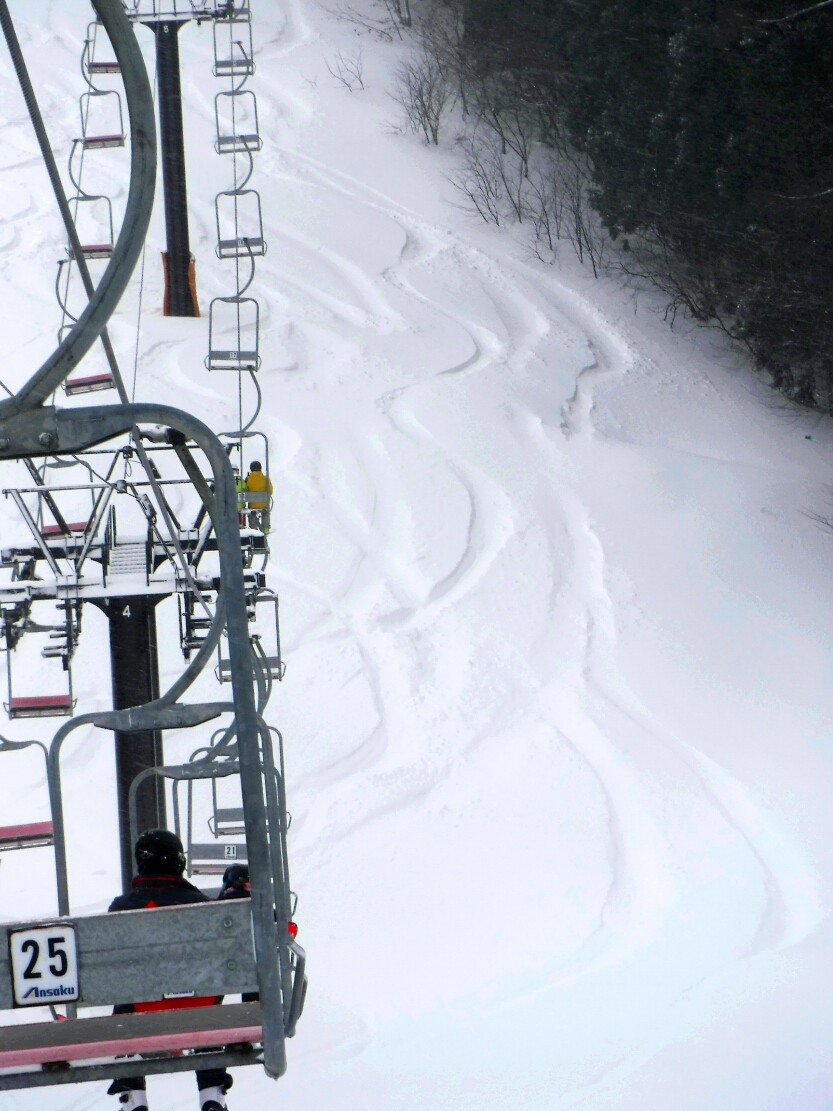 Es lohnt sich auf jeden Fall, Powder- oder Freeride-Skier bzw. -Snowboards nach Japan mitzunehmen, da der Powder teilweise sehr tief sein kann. Tiefschneebänder sind ebenfalls praktisch, um den Verlust von Skiern im Tiefschnee zu vermeiden.
