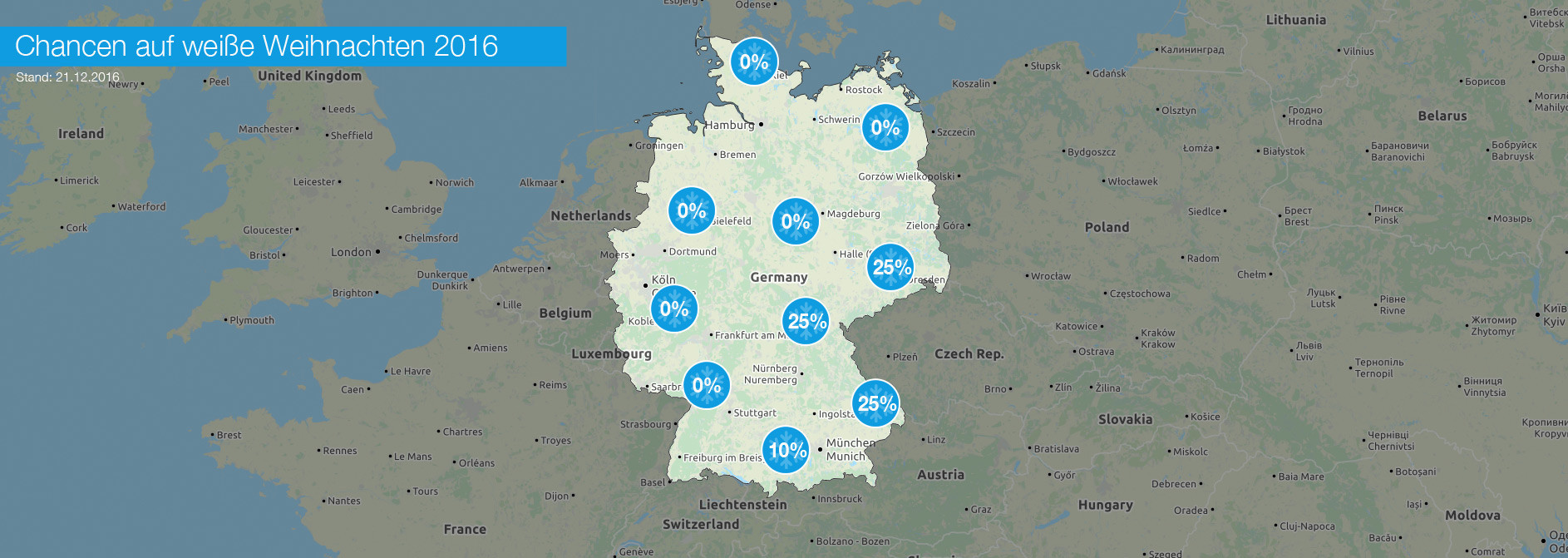 Keine weiße Weihnachten in Deutschland mit Ausnahme der östlichen Mittelgebirge
