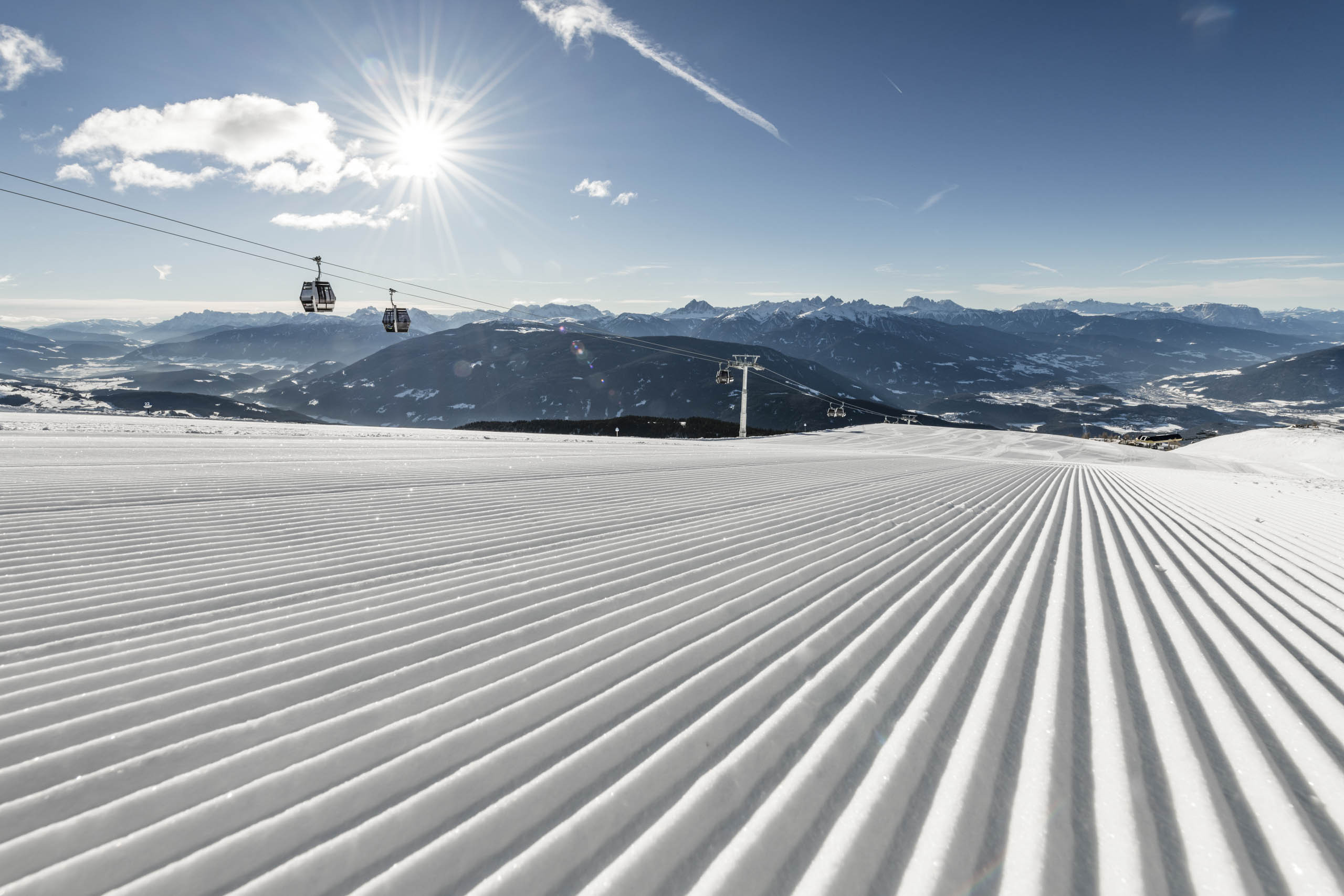 Passionierte Wintersportler können das 55 Pistenkilometer große Skigebiet erkunden. Die schneesicheren Abfahrten auf bis zu 2.500 Metern Höhe sind überwiegend blau und rot markiert und daher ideal geeignet für Genusscarver. Neben sonnigen Südhängen genießt du hier außerdem die traumhafte Aussicht auf das Eisacktal.