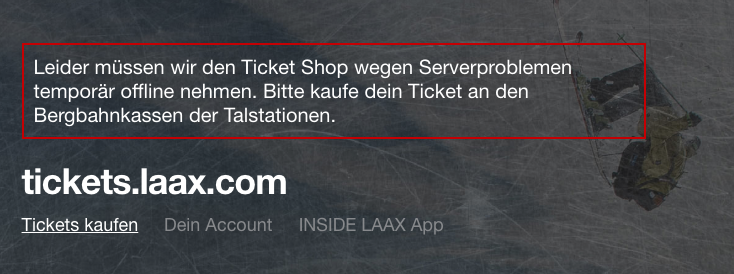 Ausgerechnet in der Hochsaison kurz vor Silvester kam es in einigen Skigebieten in der Schweiz zu gravierenden Ausfällen des Ticketsystems. Wegen eines technischen Problems am zentralen Buchungsserver der österreichischen Firma Axess gab es Schwierigkeiten beim Online-Ticket-Verkauf und beim Erkennen der Skipässe an den Zutritten der Bergbahnen.