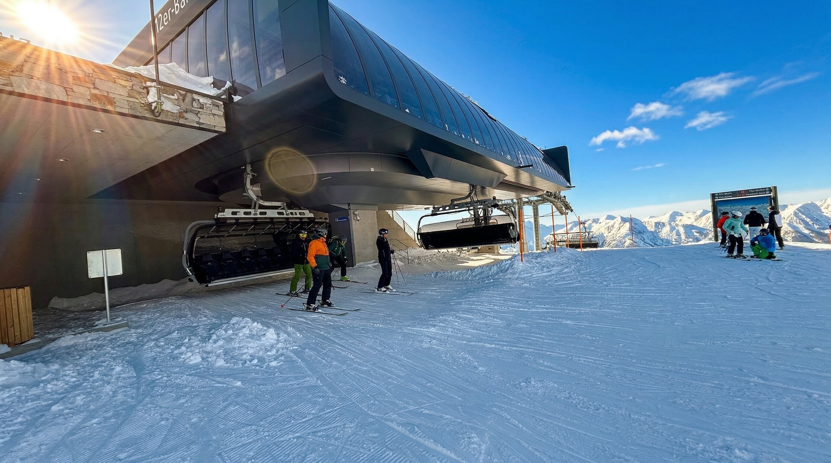 Die 38 Liftanlagen im Skigebiet sind topmodern, hier zu sehen die '12er-Bahn', eine 8er Sesselbahn auf der Fisser Nordseite.