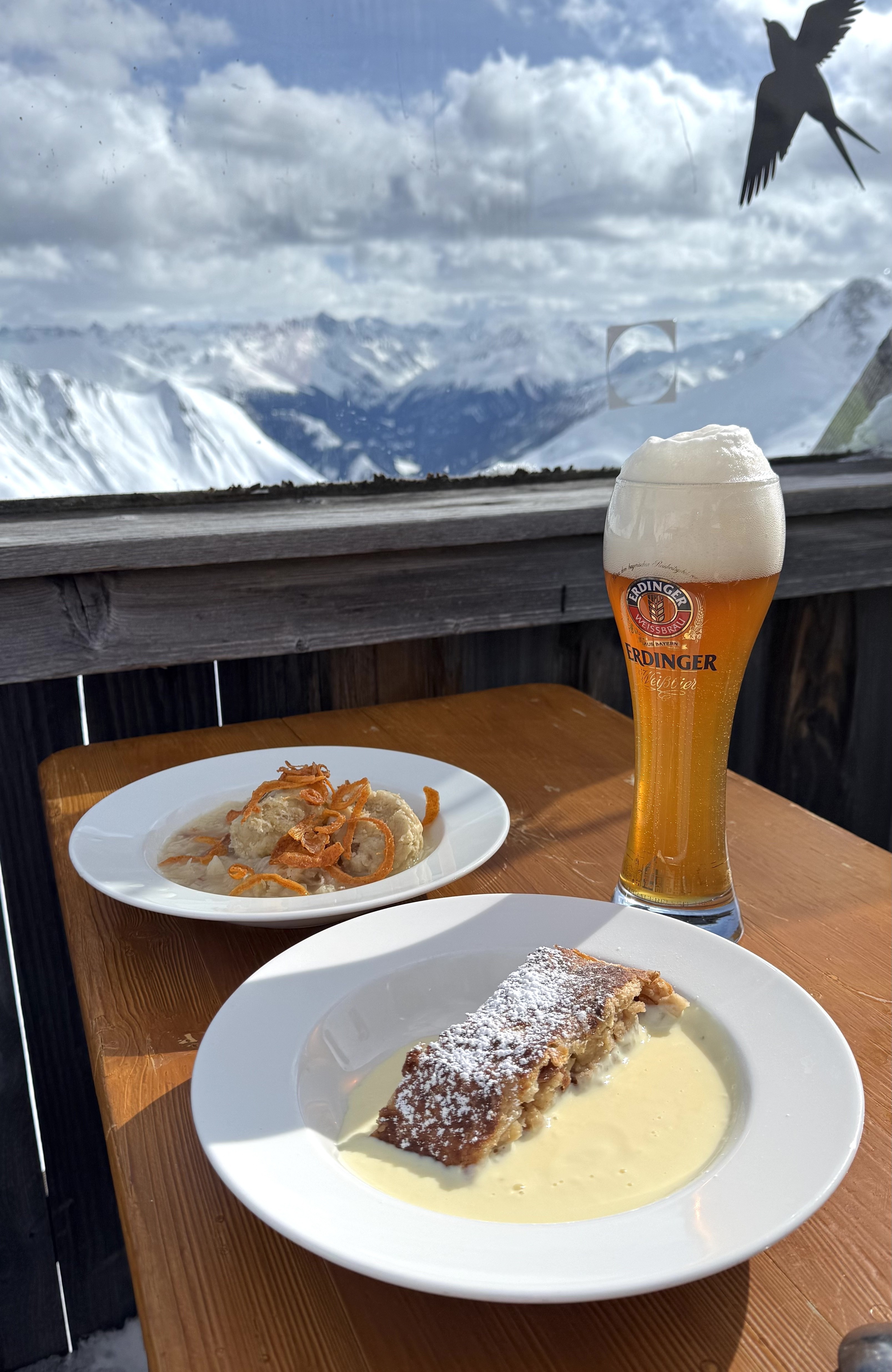 Ein weiteres Highlight unseres Skitages waren die zahlreichen Sonnenterrassen der Berghütten. Gerade im Frühjahr gehört eine gemütliche Pause auf der Terrasse fast genauso zum Skitag wie die Abfahrten selbst. Zwischen zwei Abfahrten einfach kurz die Ski abschnallen, in der Sonne sitzen und den Blick über die umliegenden Gipfel schweifen lassen – genau das macht den Reiz des Sonnenskilaufs aus.