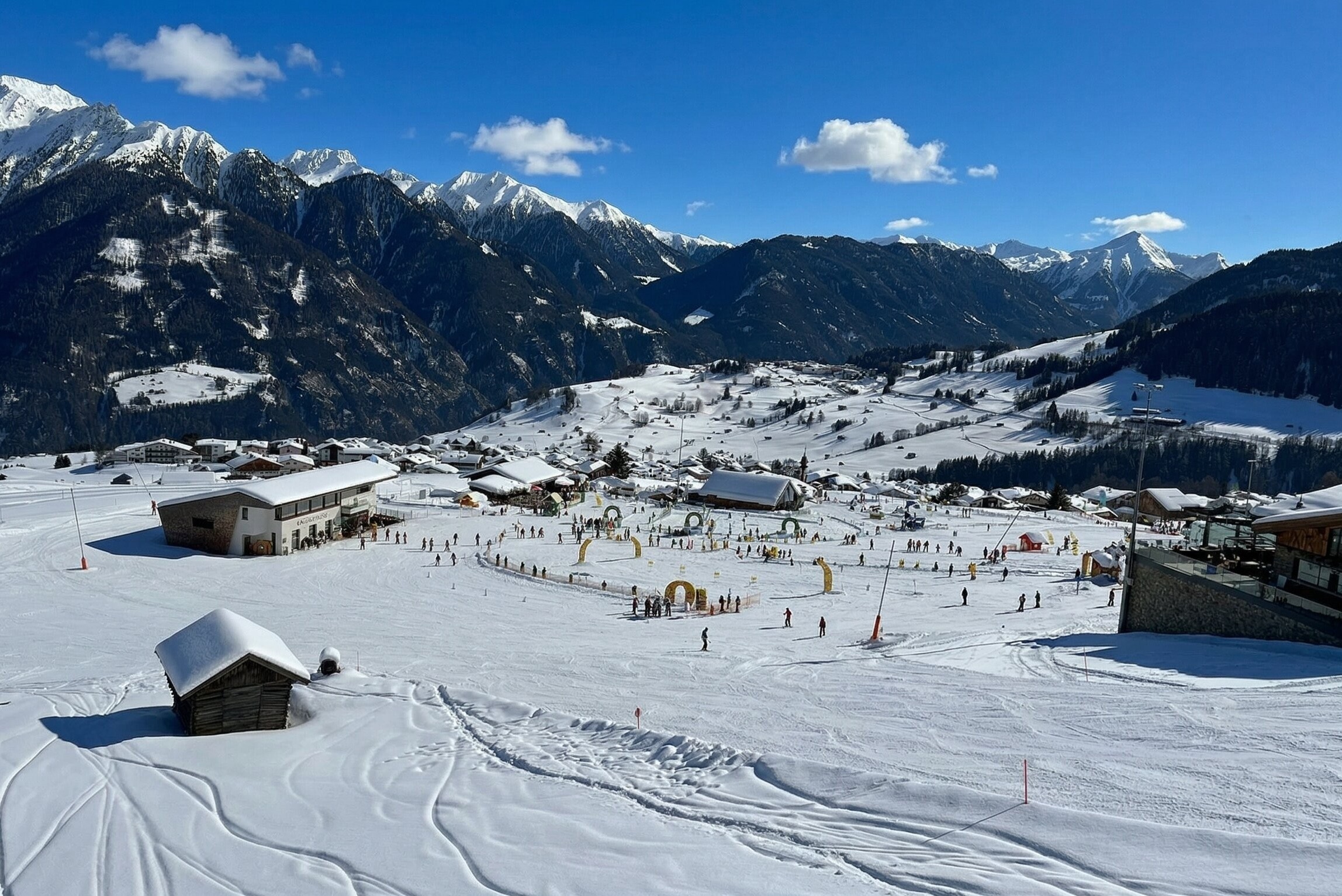 Typisch für Serfaus-Fiss-Ladis sind dabei die großzügigen Terrassen mit Panoramablick, die entspannte Atmosphäre abseits der Piste und auch die vielen Hütten entlang der wichtigsten Abfahrten. Bei unserem Besuch waren die Terrassen gut gefüllt, ohne überlaufen zu wirken – ein Zeichen dafür, dass sich die Gäste im großen Skigebiet gut verteilen.