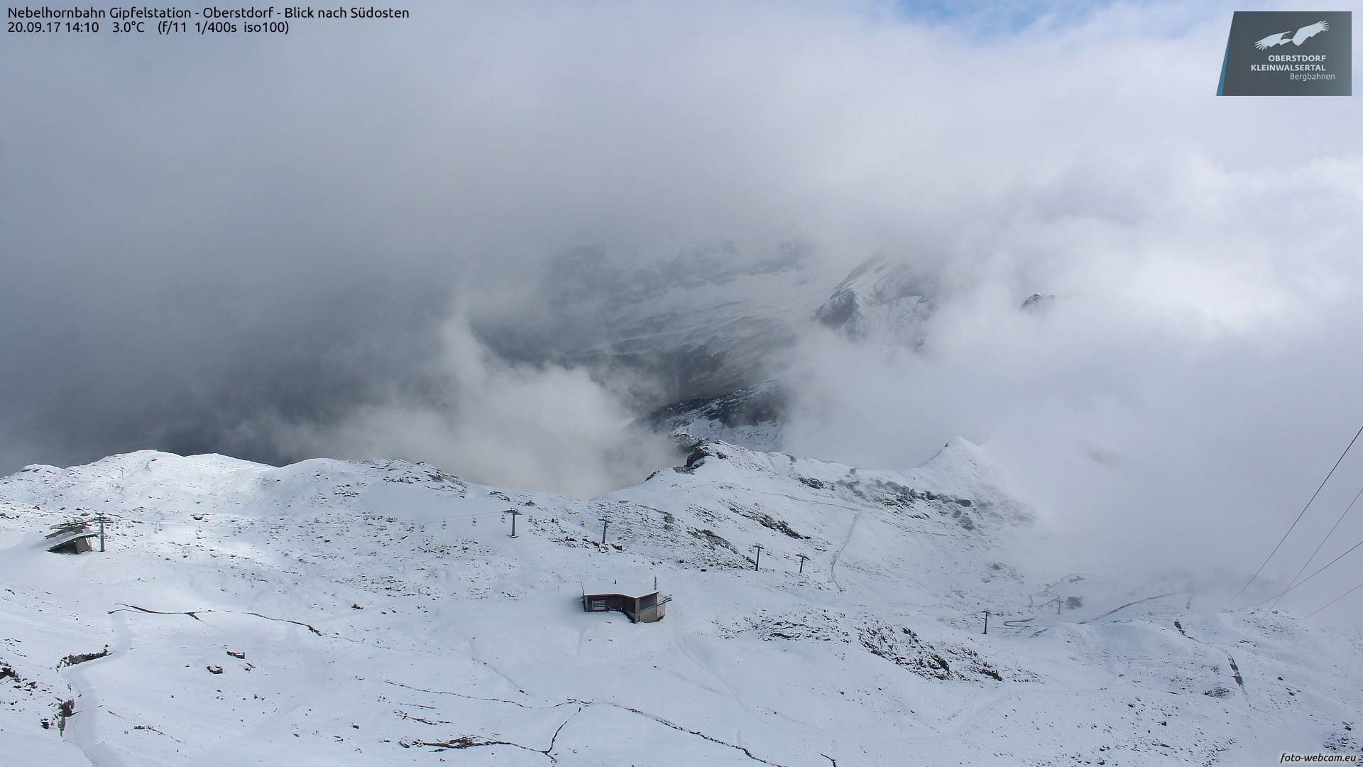 Dass es nicht nur auf den Gletschern seit Anfang der Woche kräftig schneit, sondern teilweise bis auf 1500 Meter herab, zeigen die vielen Webcambilder aus den Alpen. Dabei bekommen zum ersten Mal auch die höchsten bayerischen Gipfel wie die Zugspitze bei Garmisch oder Fellhorn und Nebelhorn bei Oberstdorf einiges von der weißen Pracht ab. -> Mehr Webcambilder aus Bayern