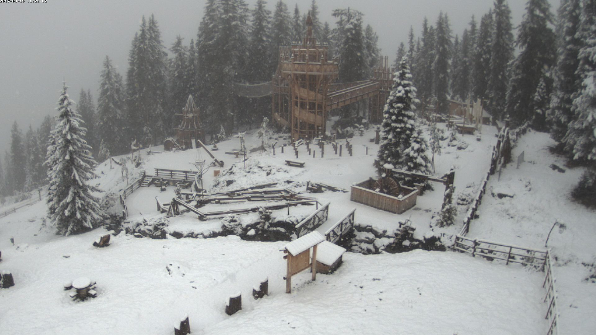 Tief verschneit ist derzeit das bei Kindern sehr beliebte Fichtenschloss auf der Rosenalm. Es liegt auf rund 1700 Höhenmeter bei Zell am Ziller. In den nächsten Tagen sollte hier der Schnee aber wieder komplett verschwinden.
