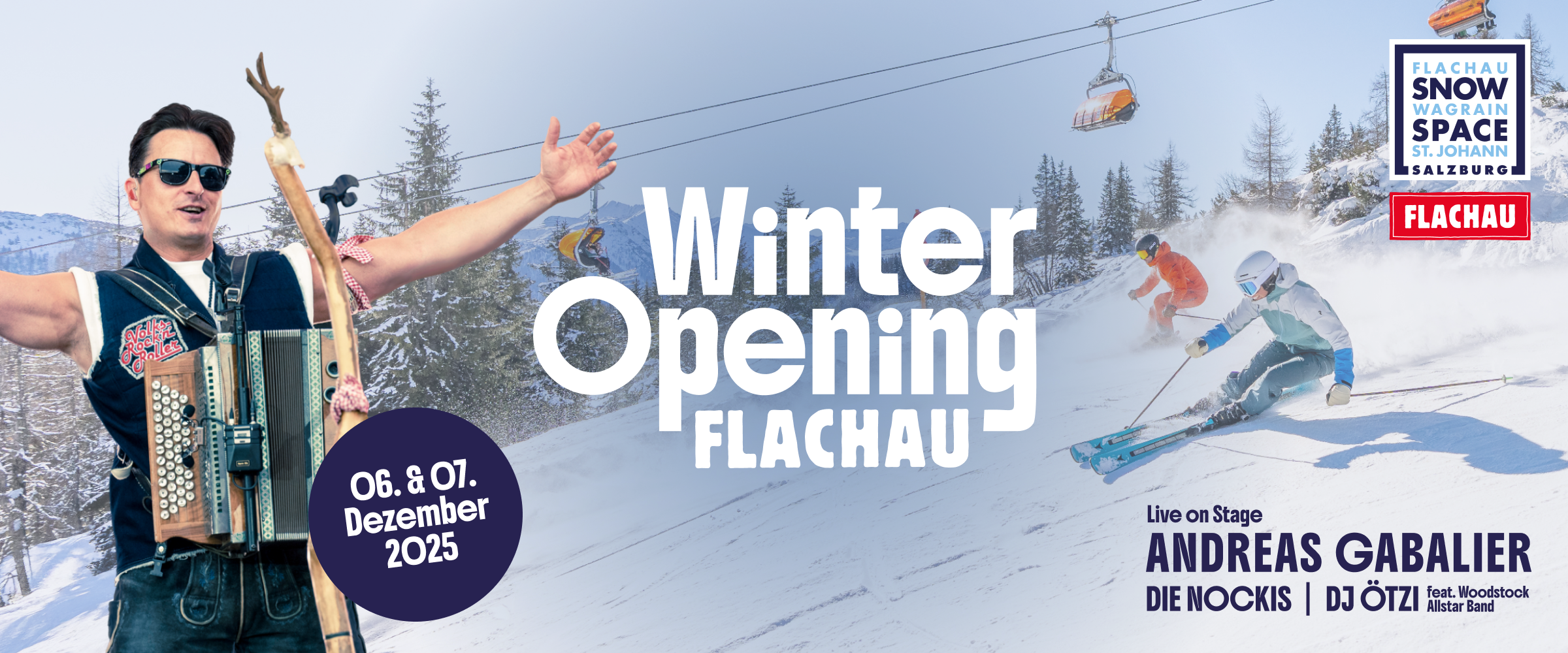 Mit einem großen Opening-Wochenende wird im Snow Space Salzburg in die neue Skisaison gestartet! Pünktlich zur Öffnung der Pisten finden in Flachau am 6. und 7. Dezember 2025 zwei Open-Air-Konzerte mit österreichischen Musiklegenden statt. Hier trifft Pulverschnee auf Volks-Rock’n’Roll und Schlager auf Après-Ski, wenn keine geringeren als Andreas Gabalier und DJ Ötzi zu Gast sein werden. Wir haben alle Informationen zur Premiere des neuen Winteropenings.