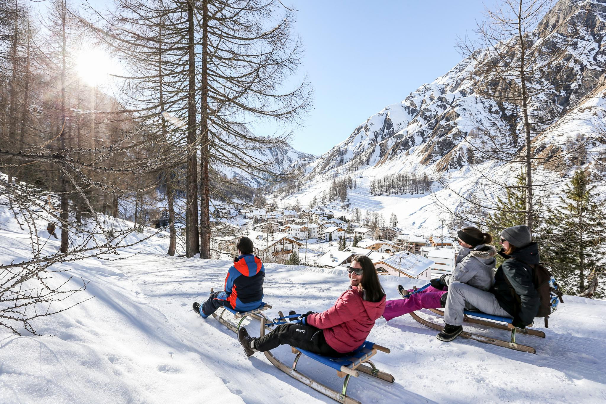 Eine rasante Fahrt auf dem Samnauner Schlittelweg ist ein Spaß für große und kleine Gäste.