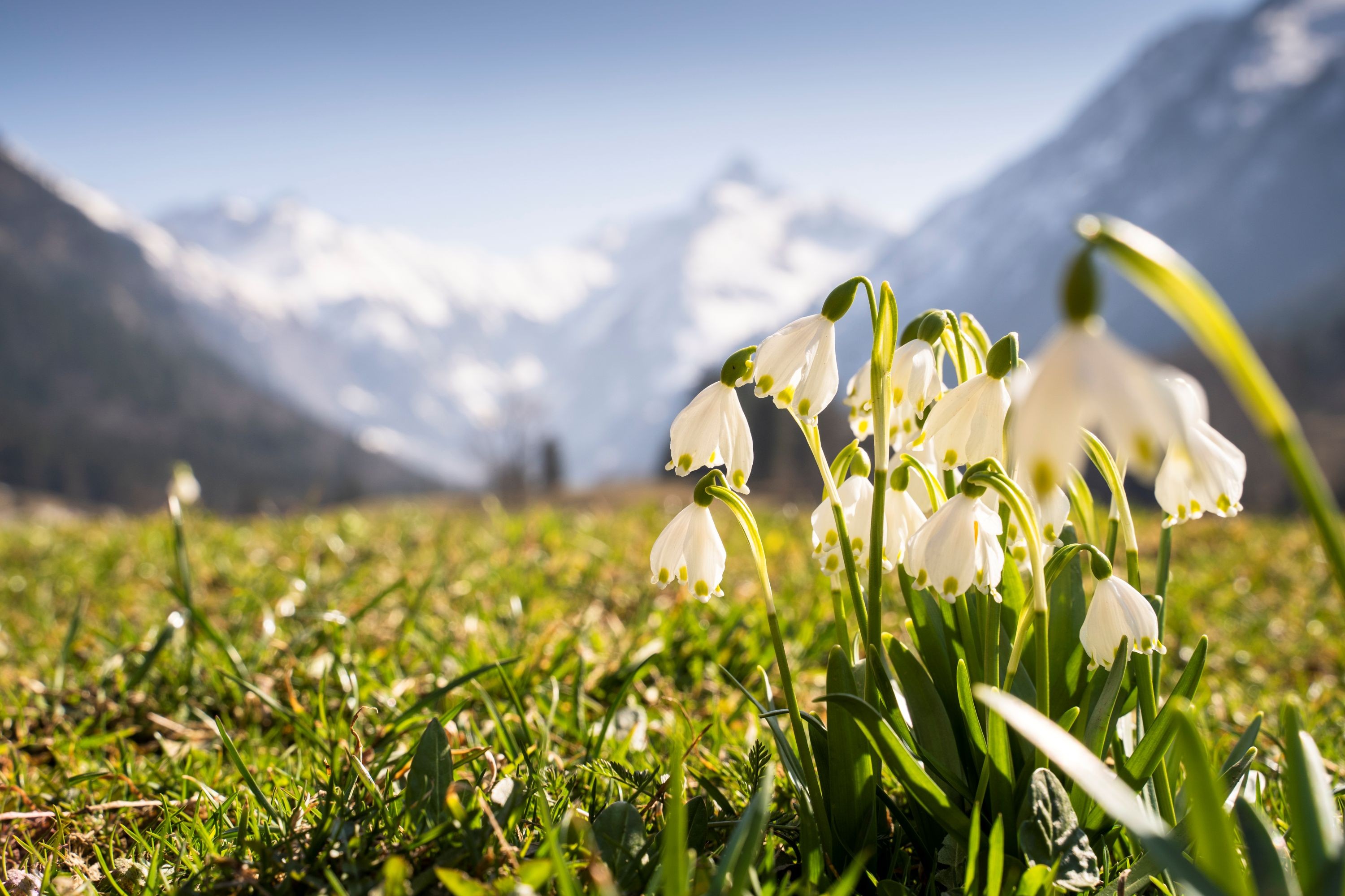 Vom strahlenden Weiß des Firnschnees, der die Pisten der Skigebiete in der Höhe immer noch in Top-Form hält, über das eisblaue Schmelzwasser, das die Bäche in den Tälern beeindruckend rauschen lässt, bis hin zu bunten Blumenwiesen mit Schlüsselblumen, Krokussen und Schusternägele.
