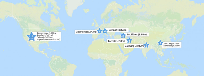 Die höchstgelegenen Skigebiete der Welt In Indien, den USA, der Schweiz, Frankreich und Russland kommt man beim Skifahren der 4.000-Meter-Grenze ganz nah. Das höchste Skigebiet der Welt liegt aber mittlerweile in China und reicht bis in eine Höhe von 4.700 Metern. In Bolivien war das... mehr...