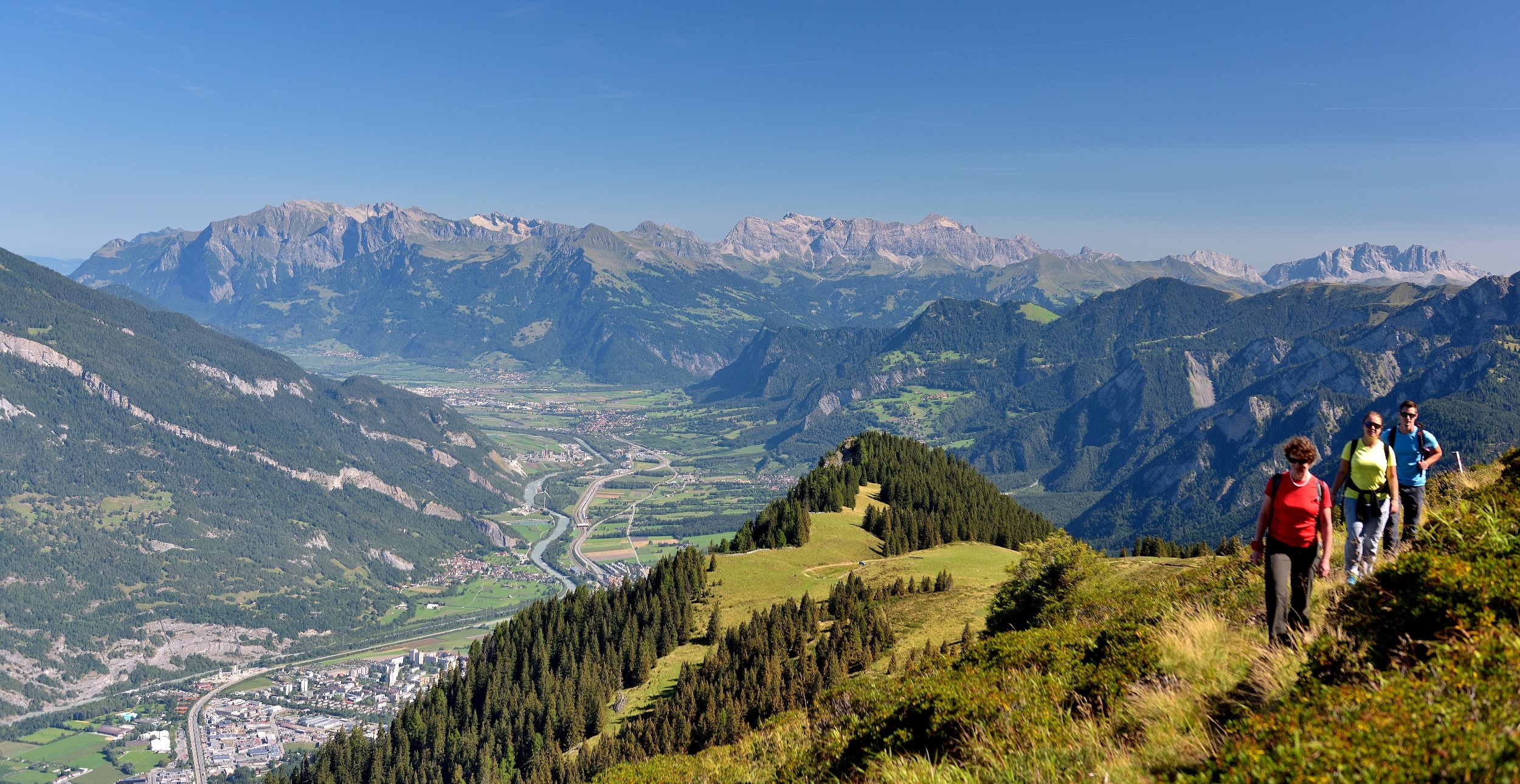 Schon die Fahrt mit der Gondelbahn ab Chur und die Hochebene Brambrüesch offenbaren ein prächtiges Bergpanorama. Oben beim Dreibündenstein geniesst man gar eine der fantastischsten Rundsichten Graubündens, welche vom Calanda über den Piz Beverin bis zum Glarner Tödi und dem Rätikon Massiv reicht. Am höchsten Punkt (Furggabüel, 2174m) steht eine zweiteilige Panoramatafel, auf welcher man sich über die Namen und die Höhe der Berggipfel sowie auch über die gut sichtbaren Gebirgszüge der Tektonikarena Sardona (UNESCO-Welterbe) informieren kann.