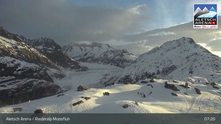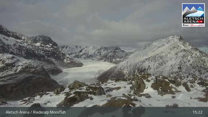 Diese Webcam befindet sich an der Moosfluh Bergstation auf der Riederalp im Wallis unweit des Grossen Aletschgletscher.