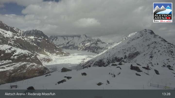 Archiviertes Webcam Bild: Aletsch Arena: Riederalp Moosfluh am 10.04.2026 um 13:09 Uhr Aktuell