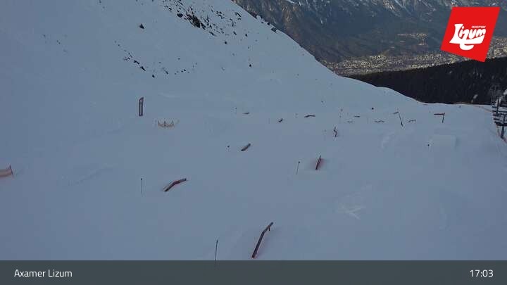 Archived webcam image showing Axamer Lizum - Karleiten lift and Snow Park on Feb 26, 2026 at 5:56 PM Aktuell