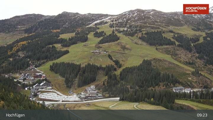 Die Panoramaaufnahme zeigt den Parkplatz Klausboden, von wo aus man in das Skigebiet Hochfügen im Zillertal einsteigt.