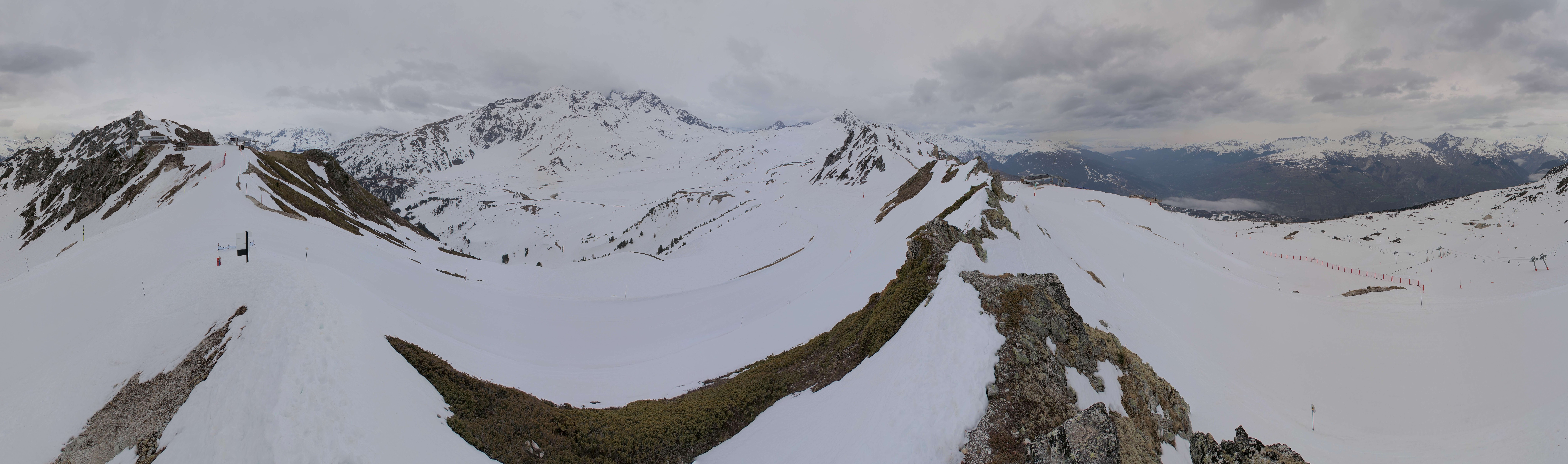 Archiviertes Webcam Bild: Peisey Vallandry - Bergstation Sessellift Arpette am 12.04.2026 um 16:01 Uhr 16:00