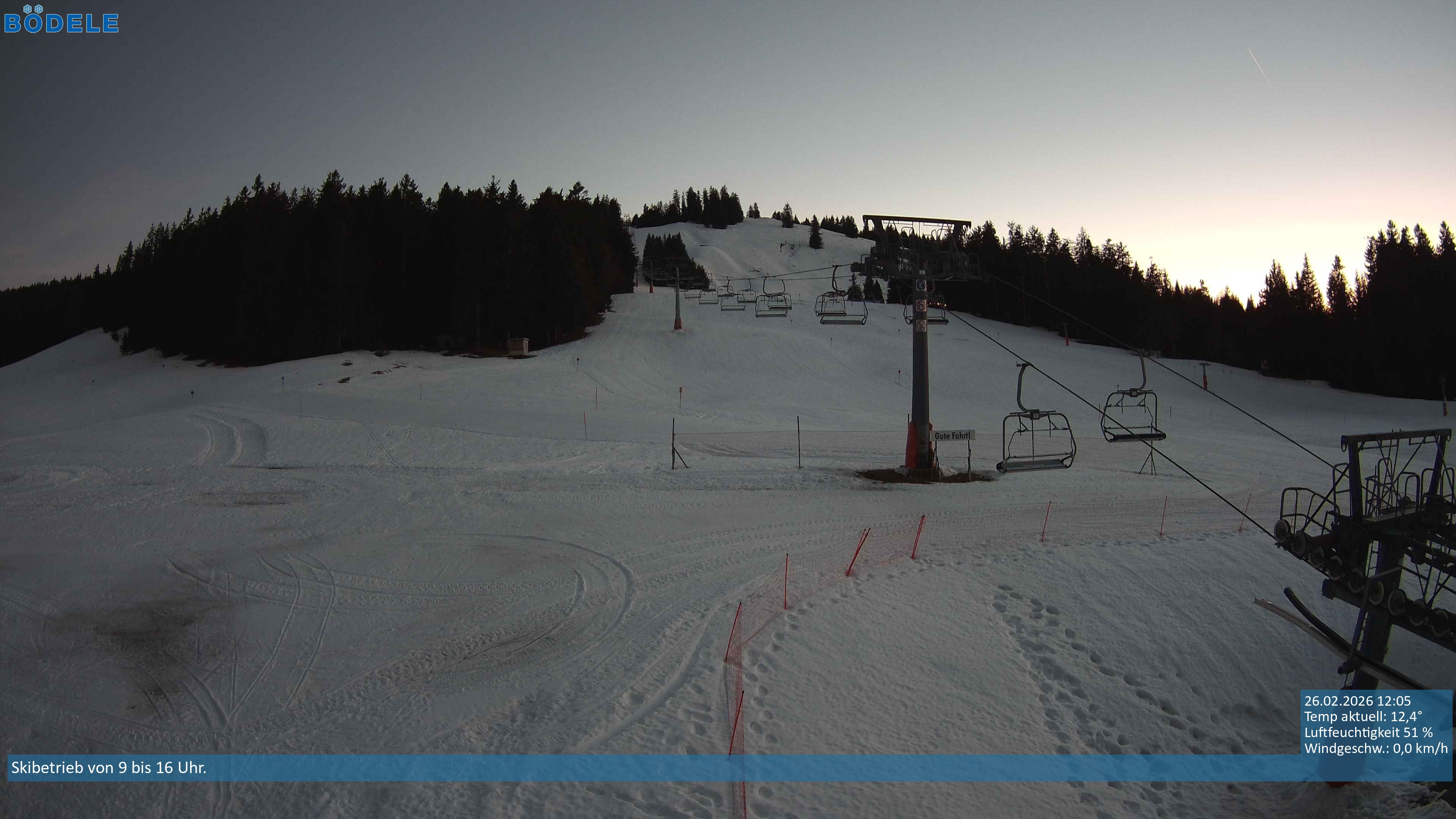 Archiviertes Webcam Bild: Bödele: Blick auf den Lanklift am 26 Feb 2026 um 18:44 Uhr Aktuell