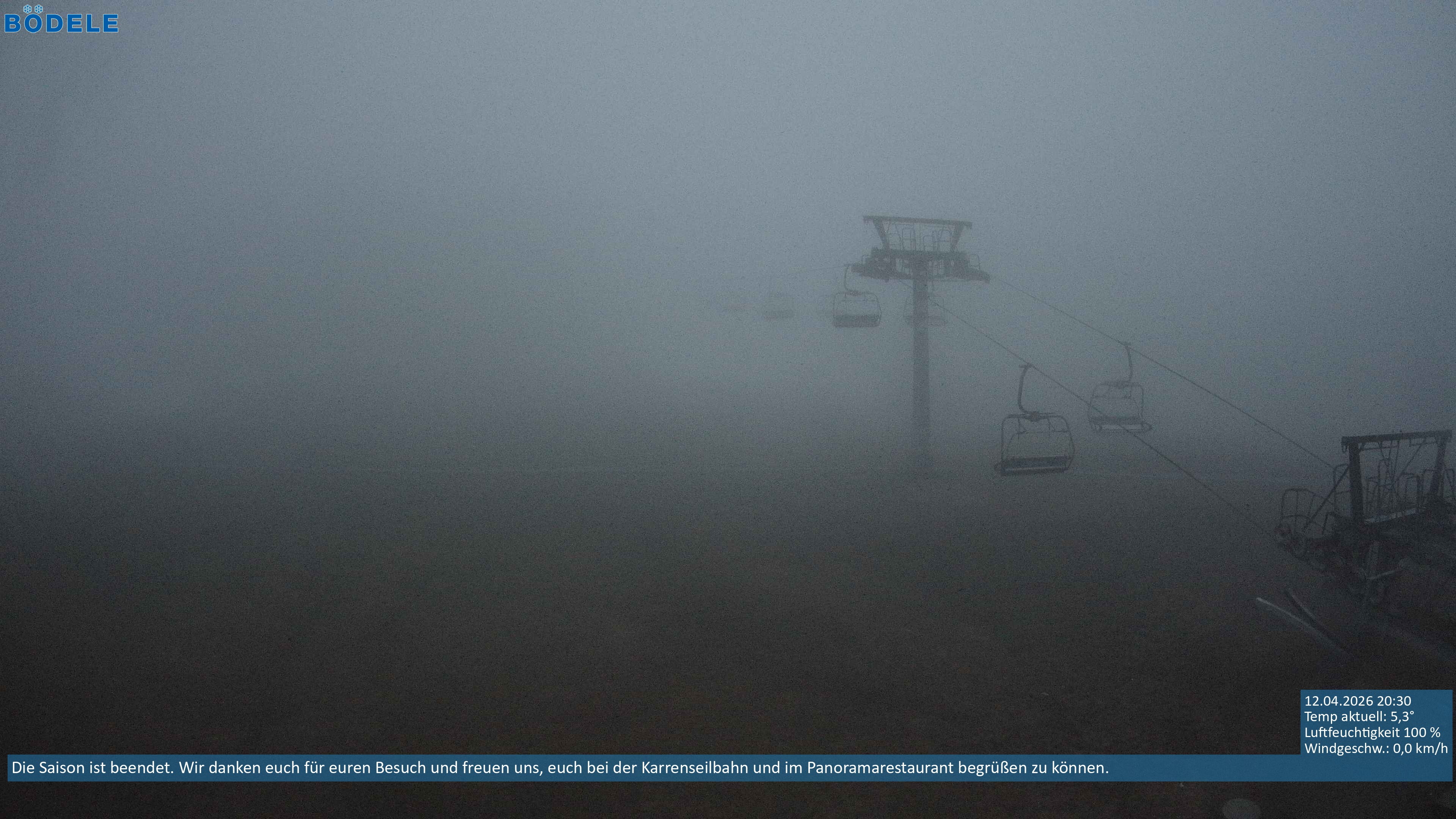 Archiviertes Webcam Bild: Bödele: Blick auf den Lanklift am 12.04.2026 um 20:42 Uhr Aktuell