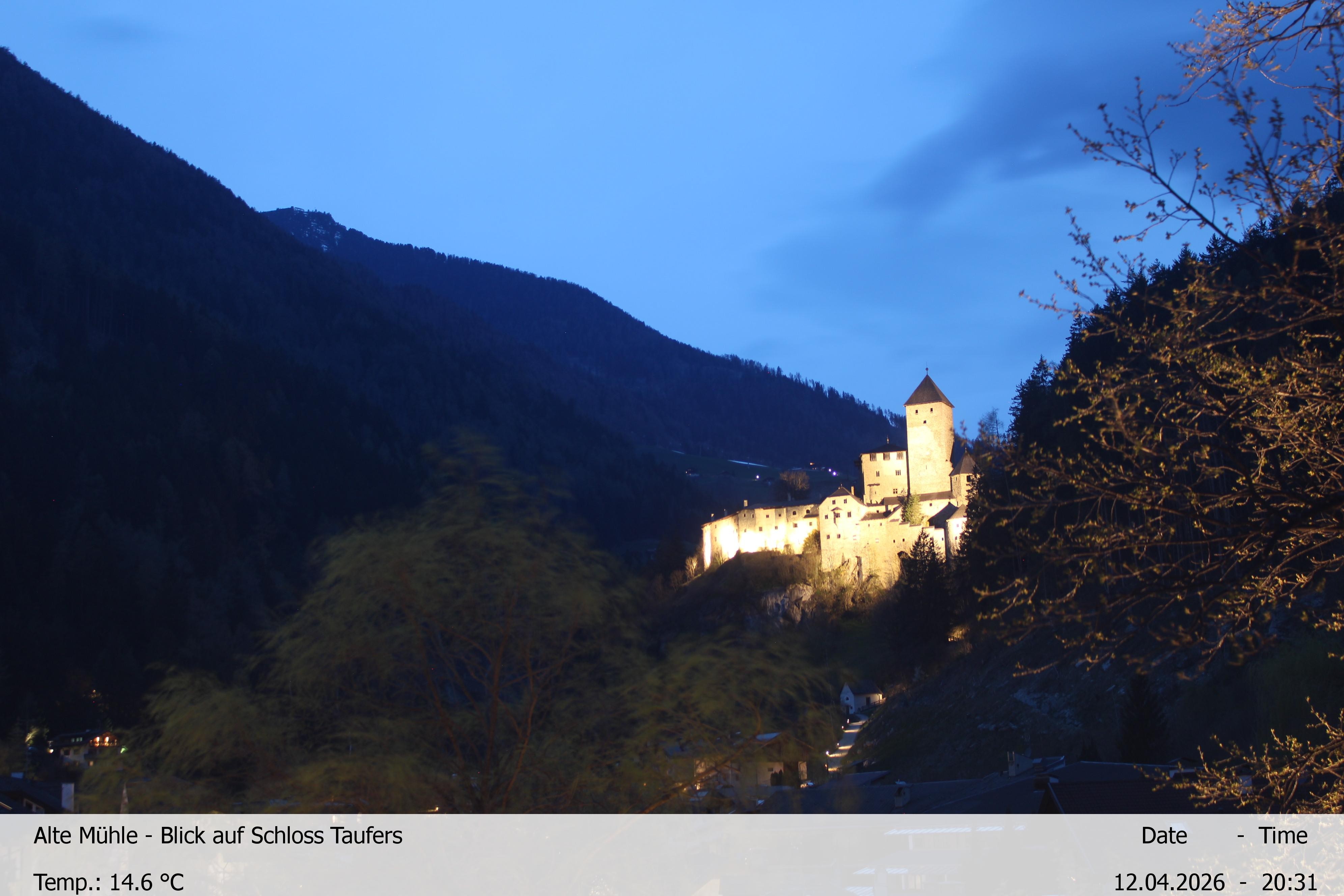 Archiviertes Webcam Bild: Blick auf Schloss Taufers am 12.04.2026 um 20:00 Uhr Aktuell