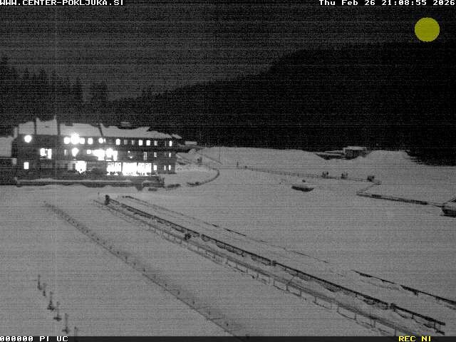 Webcam Pokljuka: Blick ins Biathlonstadion, 1,349 m