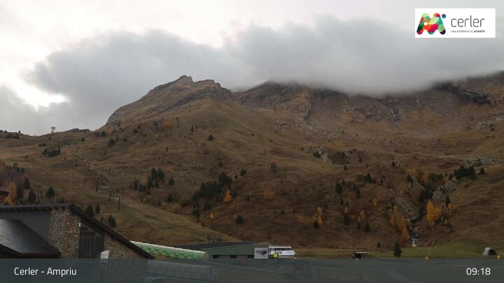 Die Webcam zeigt Live-Bilder aus dem Skigebiet Cerler in den spanischen Pyrenäen. Zu sehen ist der Blick auf die Talstation.