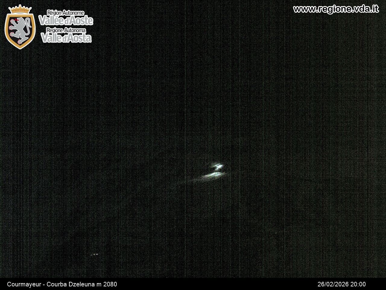 Archiviertes Webcam Bild: Courmayeur - Checrouit am 26 Feb 2026 um 20:04 Uhr Aktuell