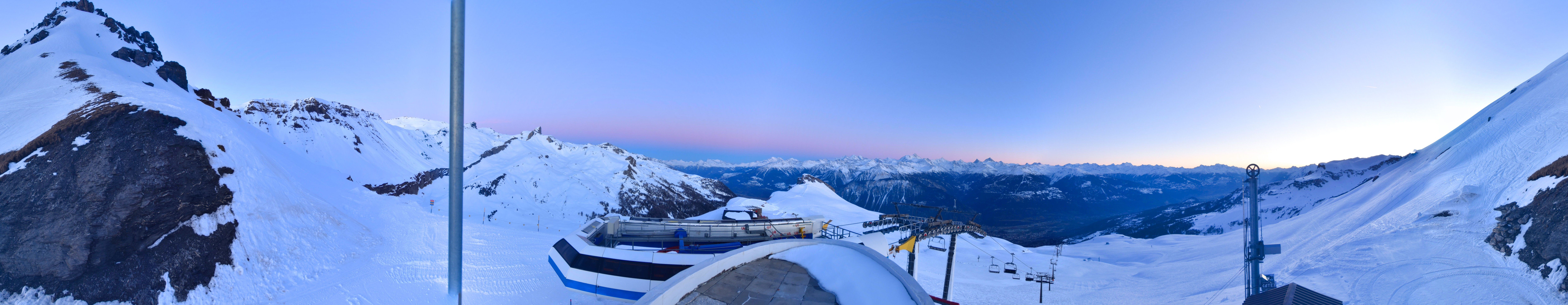 Archived webcam image showing Crans Montana - Top station La Tsa chair lift on 26 Feb 2026 at 18:56 Aktuell