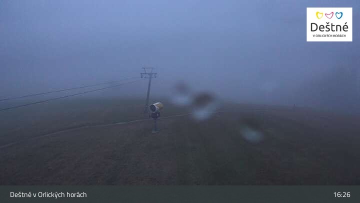Blick auf das Skigebiet Deštné v Orlických horách im Riesengebirge.