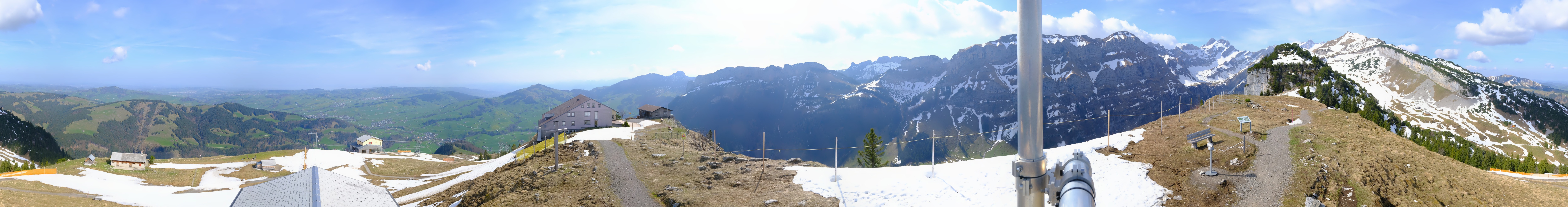 Archiviertes Webcam Bild: Ebenalp: Panoramablick Bergstation am 18.04.2026 um 10:24 Uhr Aktuell