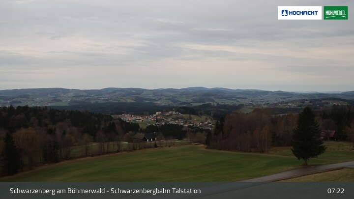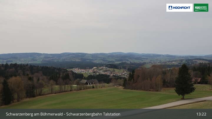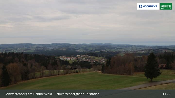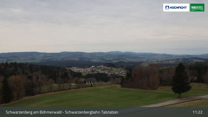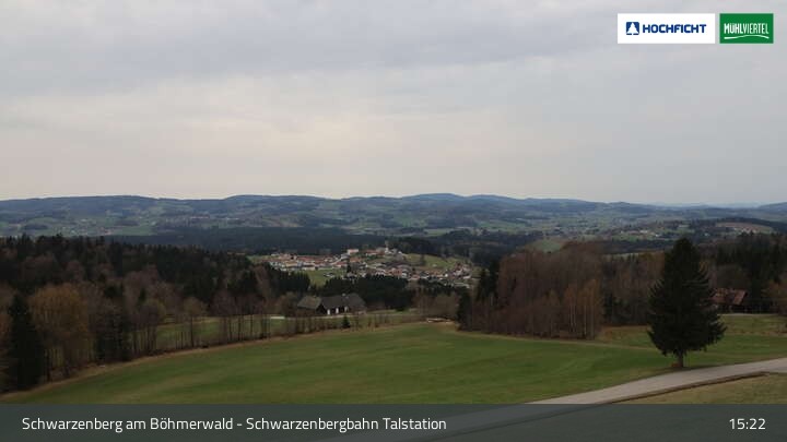 Die Webcam ist an der Talstation der Schwarzenbergbahn positioniert und zeigt einen tollen Blick auf den Ort Schwarzenberg im Böhmerwald und die Landschaft an der deutsch-österreichischen Grenze.