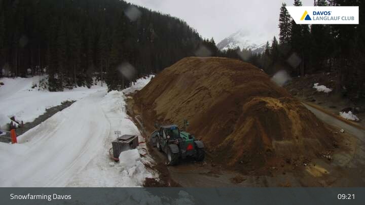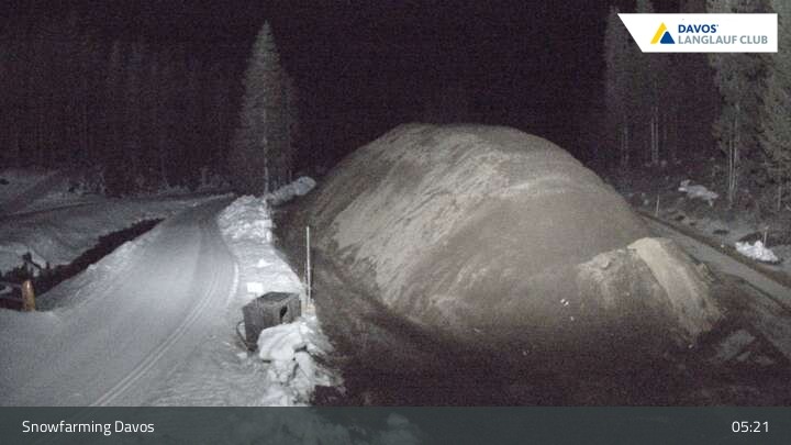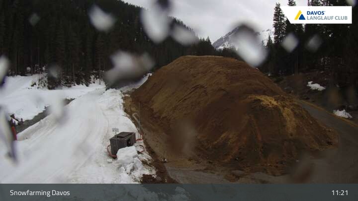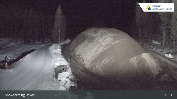 Blick auf die Langlaufloipe in Davos, Flüelatal. Dort befindet sich im Sommer auch der konservierte Schneeberg für den nächsten Winter im Rahmen des Snowfarmings.