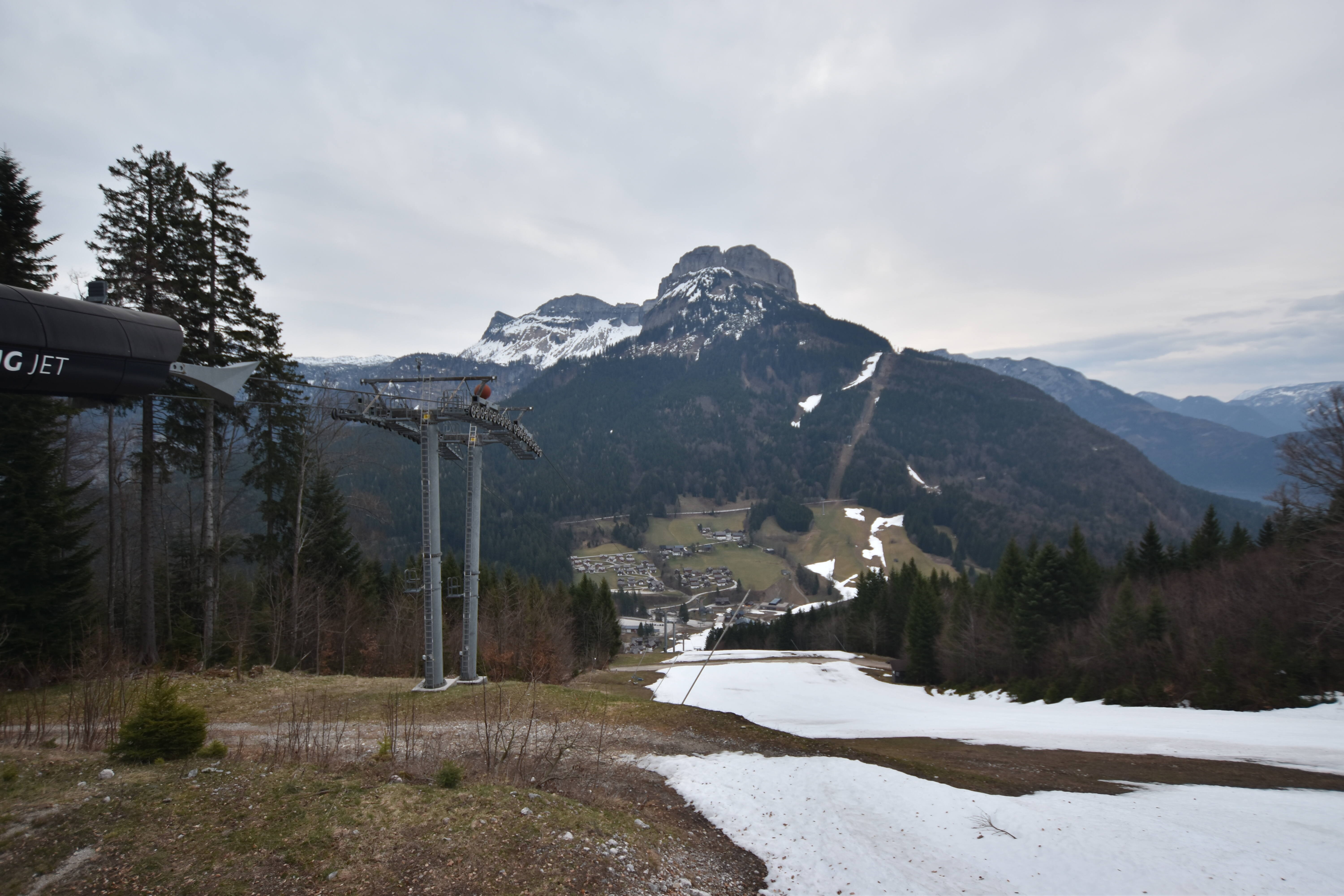 Die Kamera befindet sich an der Mittelstation des Sandling-Sessellifts und blickt nach Osten auf den Loser.