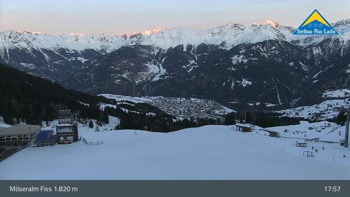 Archiviertes Webcam Bild: Möseralm oberhalb von Fiss am 26 Feb 2026 um 19:51 Uhr 18:00
