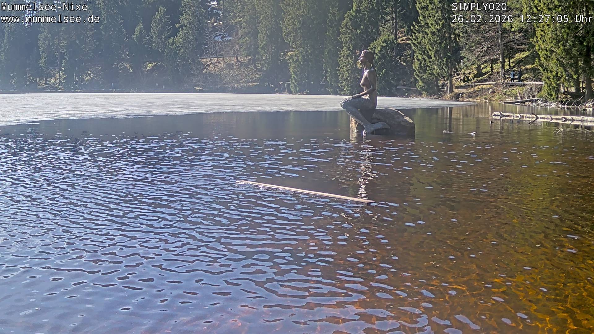 Die Webcam liefert aktuelle Bilder vom Seeufer des Mummelsees im Schwarzwald. Im Bild zu sehen ist das Seefräulein bzw. Mümmlein, eine Seejungfrau die laut einer Sage in einem prächtigen Schloss im See wohnt.