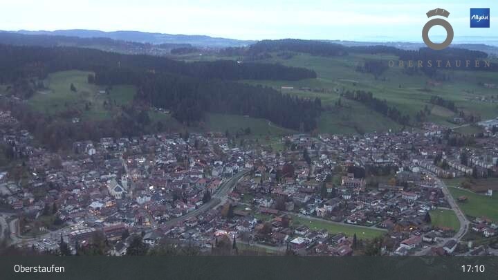 Panorama-Blick auf Oberstaufen und die Allgäuer Bergwelt.