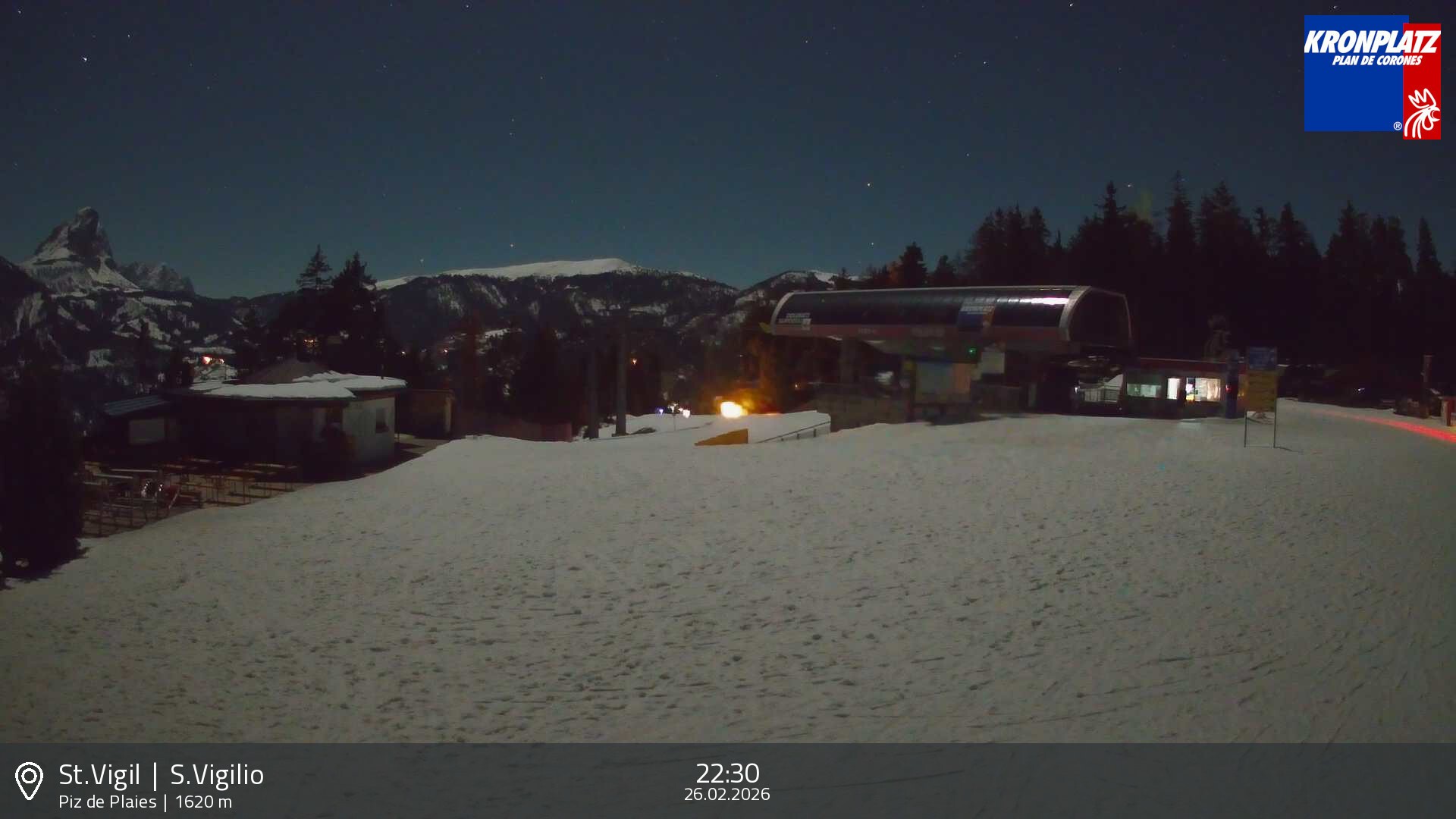 Archiviertes Webcam Bild: Kronplatz: Bergstation Piz de Plaies am 26 Feb 2026 um 22:33 Uhr Aktuell