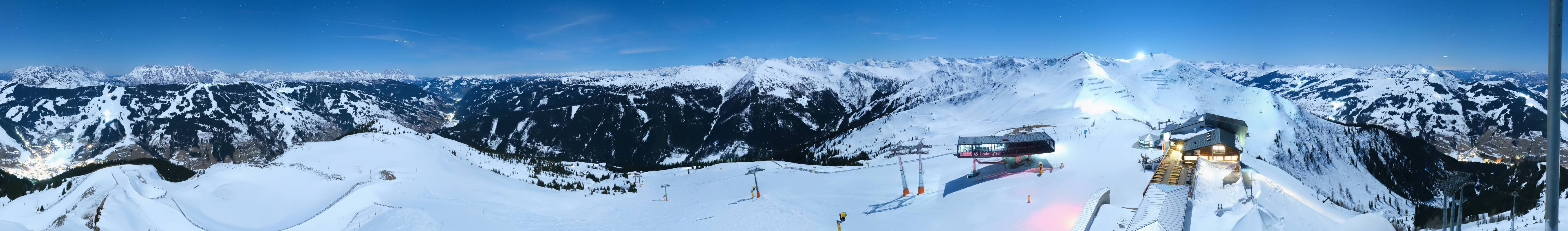 Webcam auf der Bergstation des Schattberg X-press II (2.010m) mit einem herrlichen 360-Grad-Blick über die Limberg-Abfahrt, Sky Rest und ins Tal nach Saalbach.