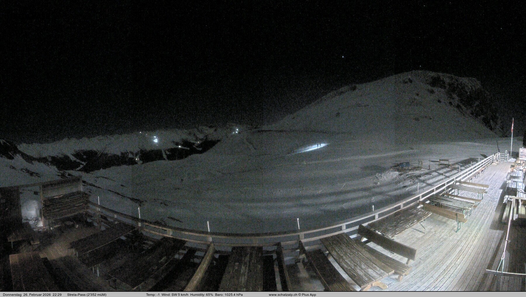 Archiviertes Webcam Bild: Davos: Strela Pass Schatzalp am 26 Feb 2026 um 22:34 Uhr Aktuell