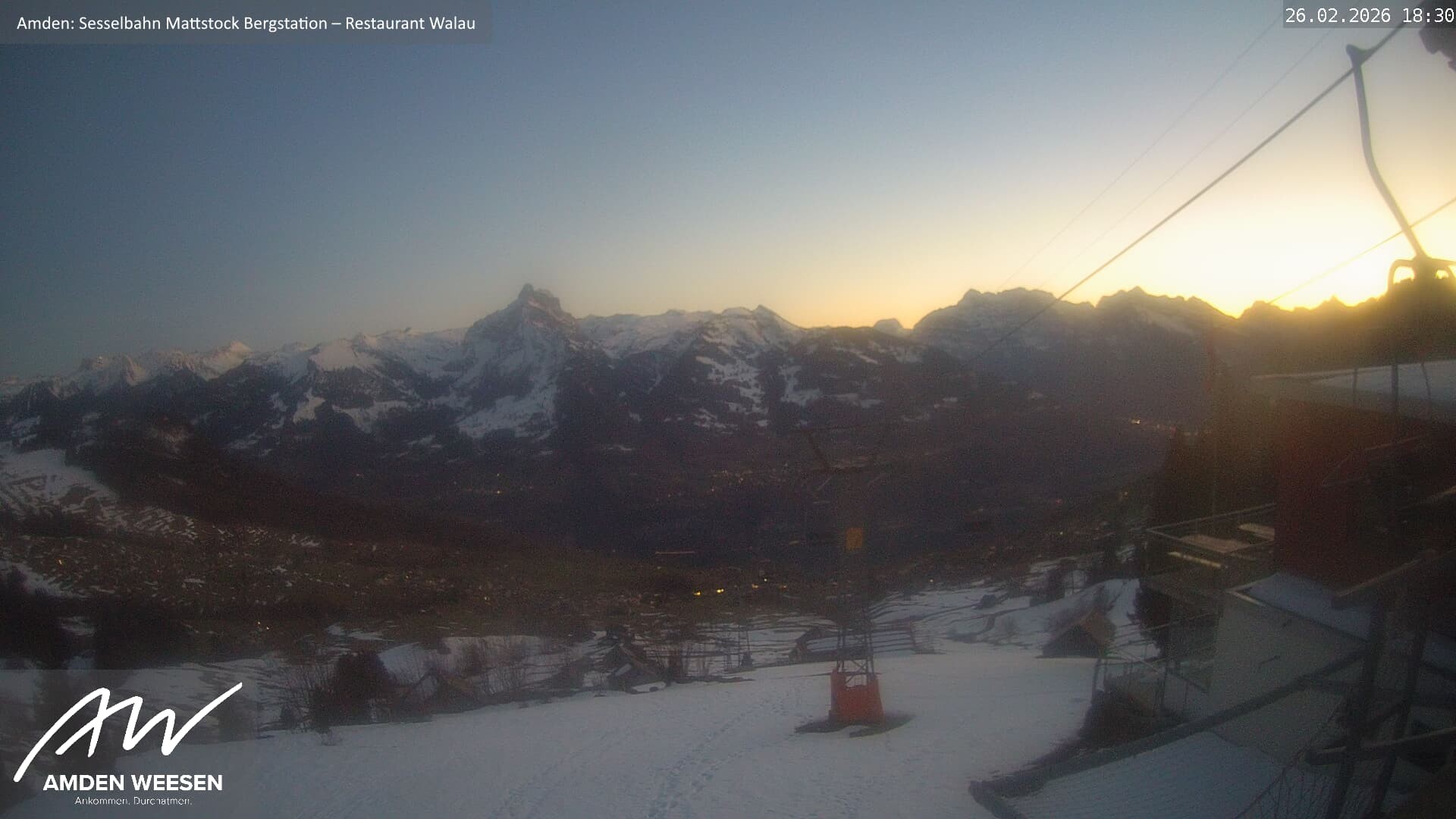 Archiviertes Webcam Bild: Amden: Strichboden Sessellift am 26 Feb 2026 um 18:56 Uhr Aktuell