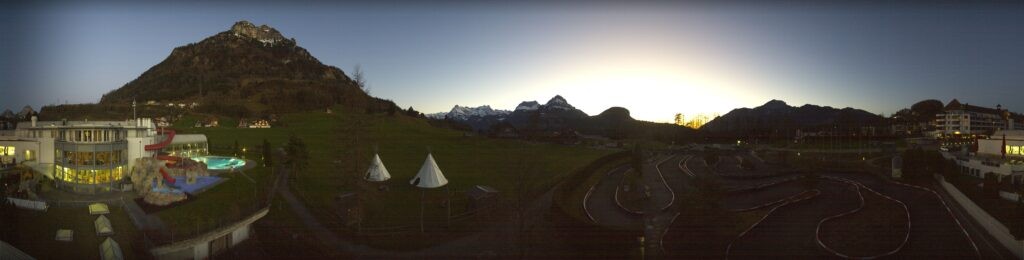 Webcam mit Blick auf das Schwimmbad im Swiss Holiday Park und den Skilift Telli in Morschach.