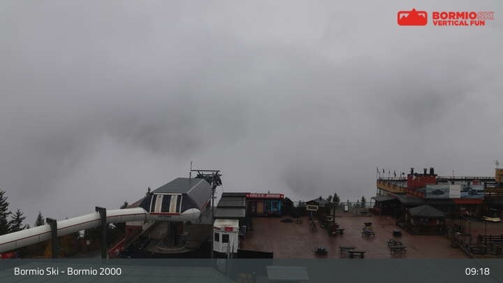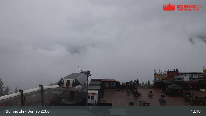 Blick auf die Talstation Bormio 2000. Auf dem Hochplateau befinden sich mehrerere Restaraunts und Unterkünfte. Auch das Kinderland liegt hier.