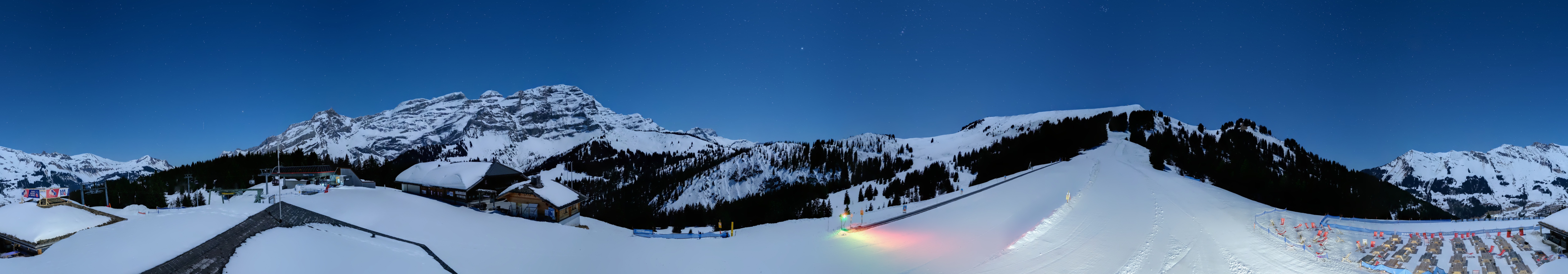 Direkt am Lift Diablerets-Isenau im Skigebiet Villars-Gryon-Diablerets in der Schweiz gelegen, bietet die Roundshot-Cam einen fantastischen 360-Grad-Blick auf die umliegende Bergwelt, den Ayerne Skilift und das Bergrestaurant Le Resto d'Isenau.