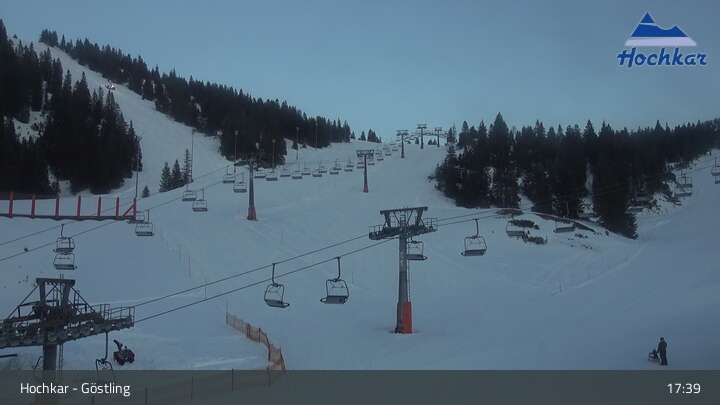 Die Webcam zeigt die Talstation am Hochkar im Skigebiet Hochkar - Göstling. Zu sehen sind die Sessellifte "Hochkar Vorgipfel" und "Häsing".