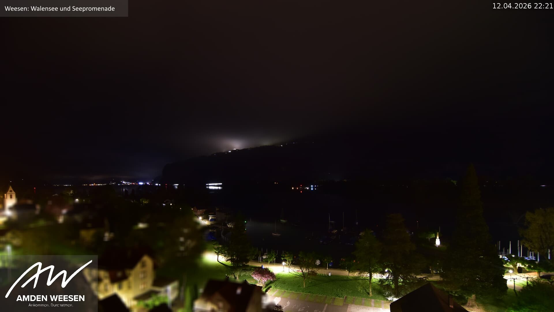 Archiviertes Webcam Bild: Weesen – Blick auf den See am 12.04.2026 um 22:14 Uhr Aktuell