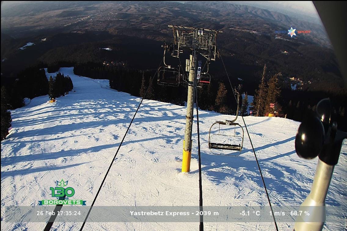 Diese Webcam zeigt den Blick auf den 4er Sessellift Yastrebets Express auf einer Höhe von 2.039 Metern.